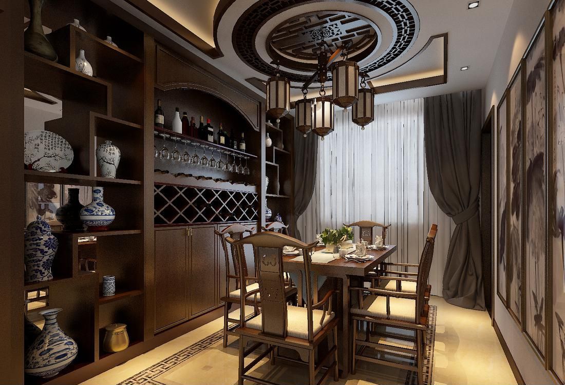 5、现代中式风格更多地利用了后现代手法,把传统的结构形式通过重新设计组合以另一种民族特色的标志符号出现。例如,厅里摆一套明清式的红木家具,墙上挂一幅中国山水画等,传统的书房里自然少不了书柜、书案以及文房四宝。中式风格的客厅具有内蕴的风格,为了舒服,中式的环境中也常常用到沙发,但颜色仍然体现着中式的古朴,中式风格这种表现使整个空间,传统中透着现代,现代中揉着古典。这样就以一种东方人的“留白”美学观念控制的节奏,显出大家风范,其墙壁上的字画无论数量还是内容都不在多,而在于它所营造的意境。
