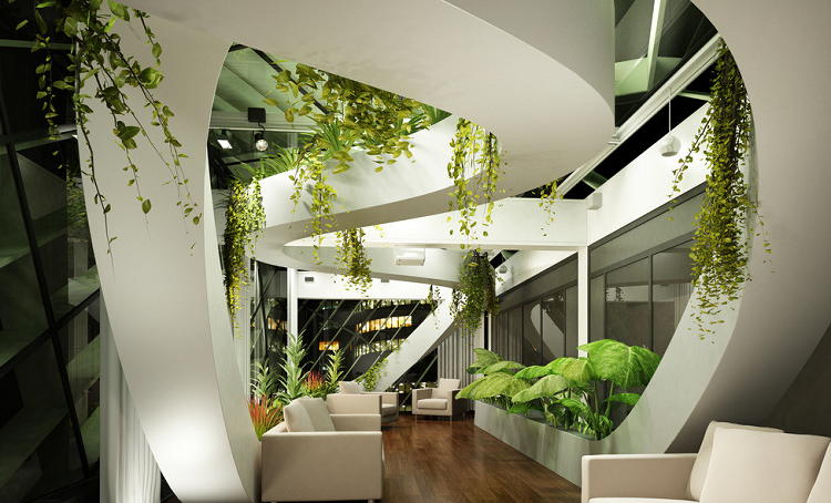 室内绿化在现代室内设计中具有不能代替的特殊作用。室内绿化具有改变室内小气候和吸附粉尘的功能,更为重要的是,它能给室内环境带来自然气息,令人赏心悦目。