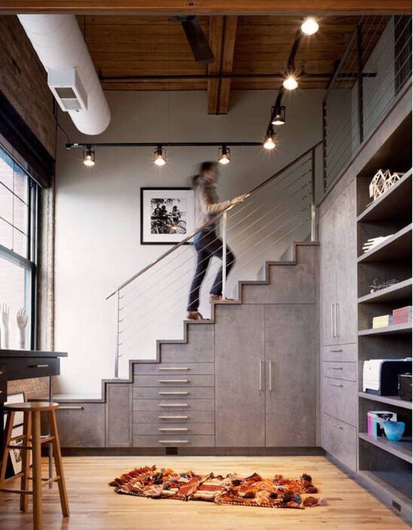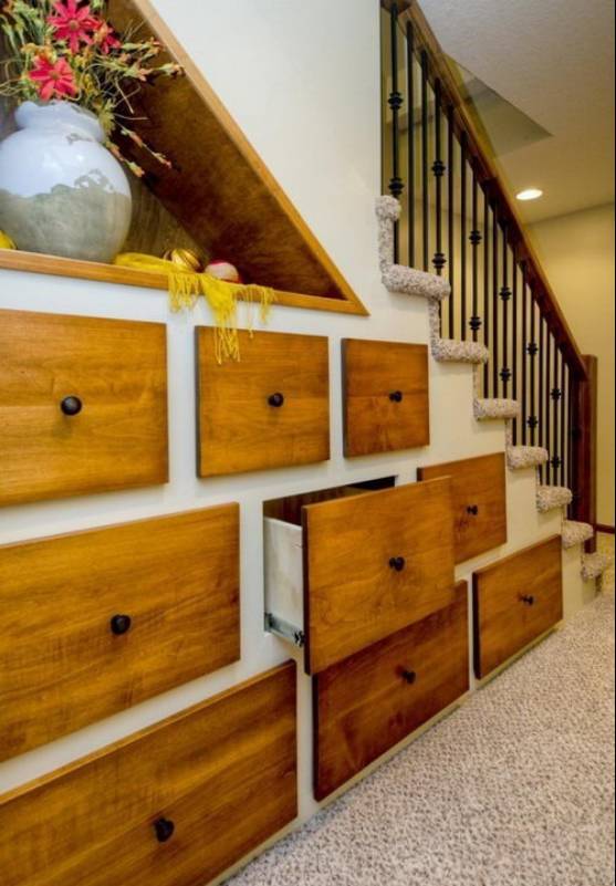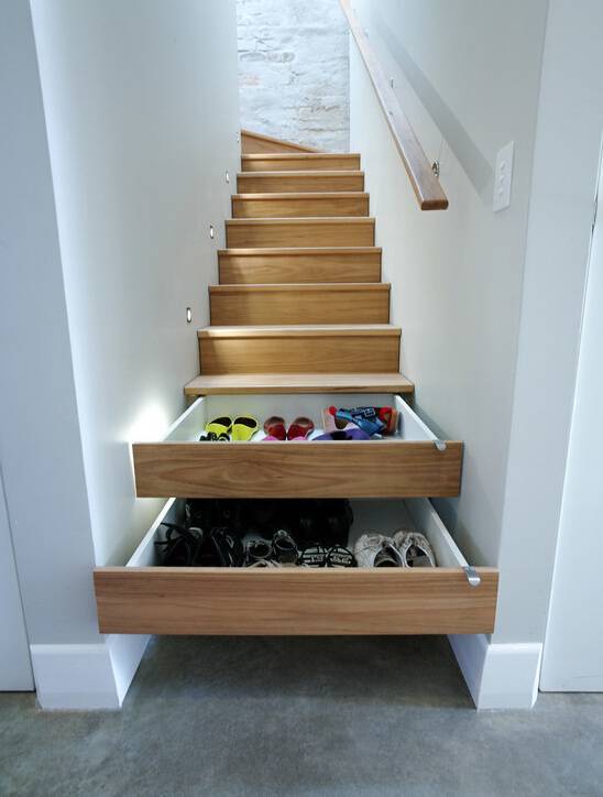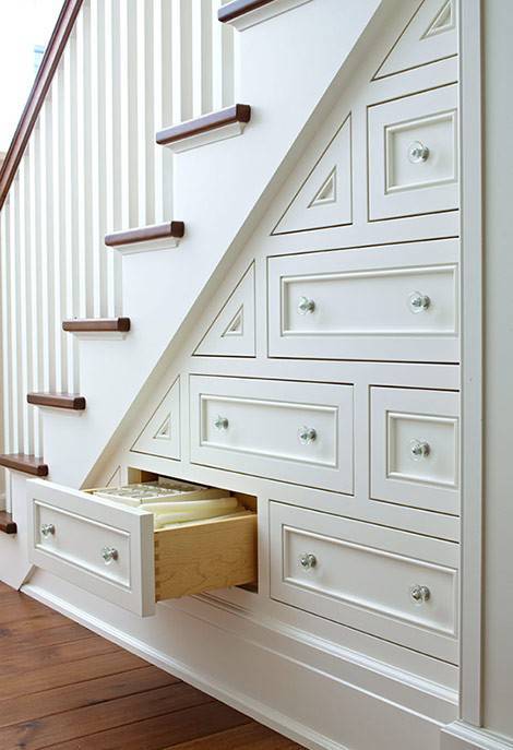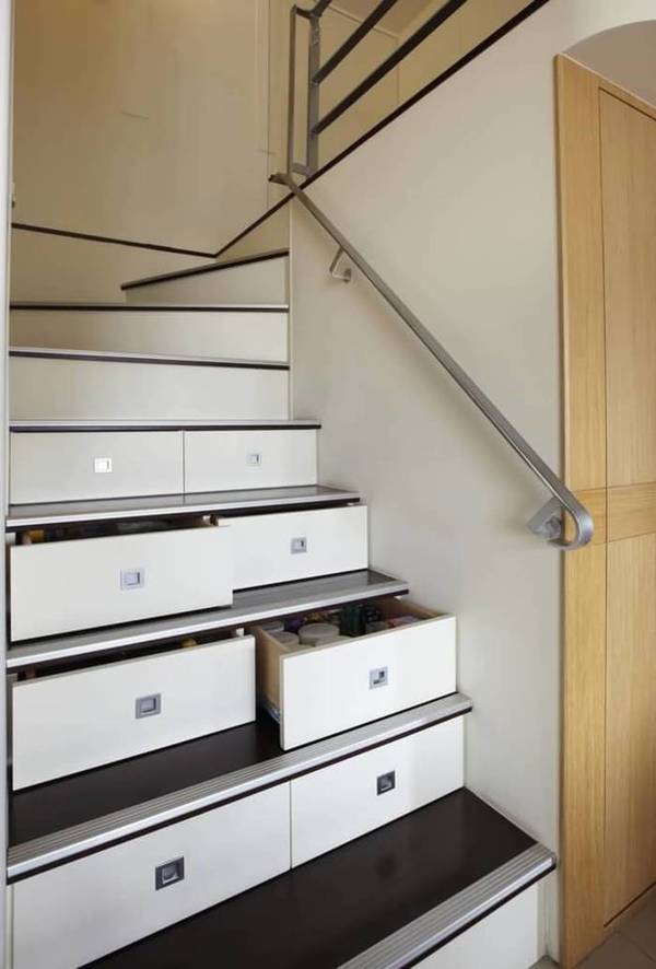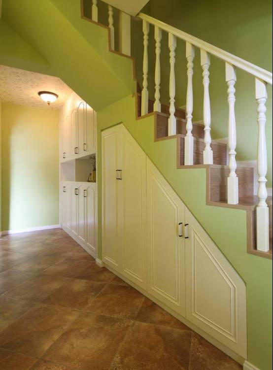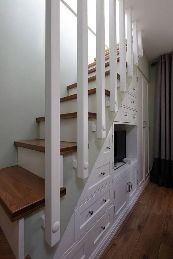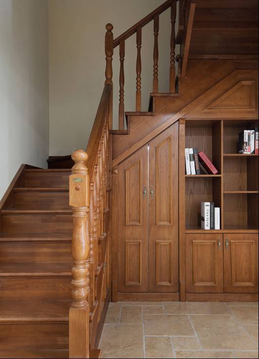 楼梯踏步是一个特殊的领域,具有高低、不规则等特点,再设计时要尽量选择膨胀系数小的木材,不破坏整体结构。但要确保每个抽屉的开关都带有实用性。考虑到后期卫生问题,抽屉要具有高度灵活性。