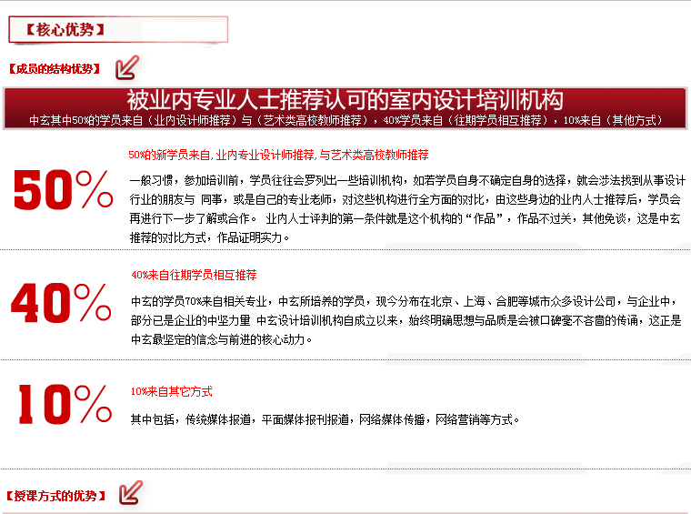 1、中玄从不教授“华而不实”的课程,我们所开设的课程全部都是中玄装饰设计公司真实案例,学员与客户零距离; 2、中玄的教师全部来自知名装饰公司的首席设计师和设计总监;10年以上工作经验。 3、中玄设计培训机构和全国2000多家知名装饰企业有合作关系,学员毕业后推荐就业; 4、中玄设计培训机构是ICDA(国际建筑装饰协会)和CBDA(中国建筑装饰协会)制定的安徽授权单位,让学员在学习的同时可以考取国家认可的设计证书,为以后的职业道路保驾护航。