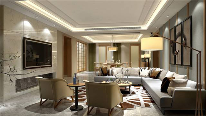 在两个长沙发摆在一起或是沙发的体积很大的情况下,矮茶几则是正确的选择,矮茶几的高度最好和沙发坐垫位置的高度持平。