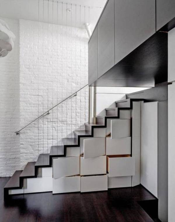 楼梯踏步是一个特殊的领域,具有高低、不规则等特点,再设计时要尽量选择膨胀系数小的木材,不破坏整体结构。但要确保每个抽屉的开关都带有实用性。考虑到后期卫生问题,抽屉要具有高度灵活性。