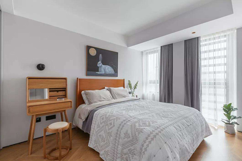 主卧室是房屋主人的私人生活空间,它的设计不仅要满足双方情感与志趣上的共同理想,而且也必须顾及夫妻双方的个性需求。高度的私密性和安全感是主卧室布置的基本要求。另一方面,它必须合乎休闲、工作、梳妆及卫生保健等综合要求。因此主卧室实际上是具有睡眠、休闲、梳妆、漱洗、储藏等综合实用功能的活动空间。