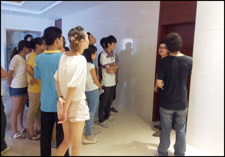 今天中玄室内设计培训2012052期学员来到合肥市黄山路黄金广场是中玄装饰工装工地,这个工地是我们中玄装饰的一位高级室内设计师的作品,它是一个售楼部,要知道售楼部乃整个小区的门面,它代表了你这个开盘楼盘的档次,因些售楼部的装修一定要豪华,说到豪华,我们的第一感觉就会想到大理石和吊顶。那我们中玄室内设计师学员们今天要学习的装修工艺便是吊顶工艺与地面工艺。这是传几张现场图片,看看工地实践现场吧。