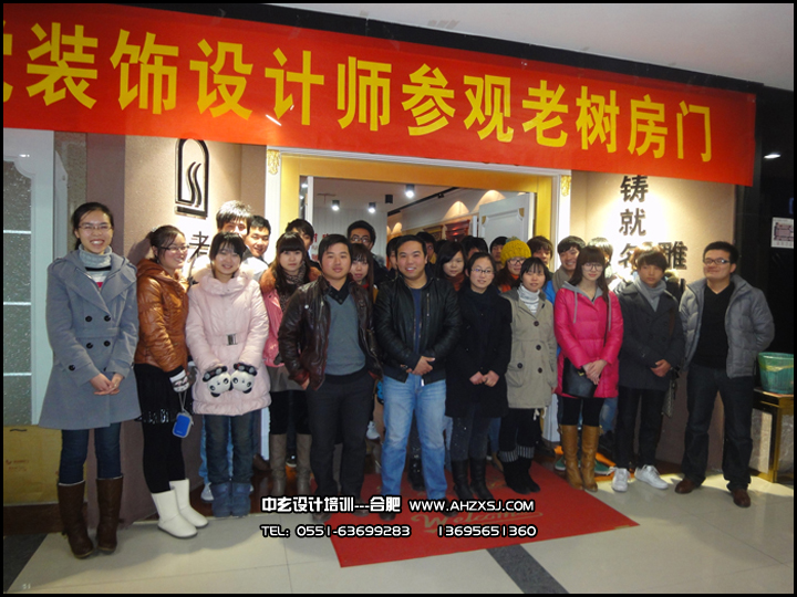 中玄装饰设计室内设计师培训中心组织室内设计培训学员参观老树房门实践学习合影留念
